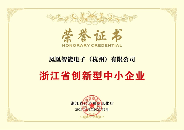 二O二四年凤凰智能电子荣获浙江省创新型中小企业