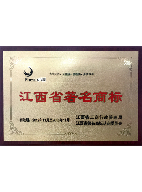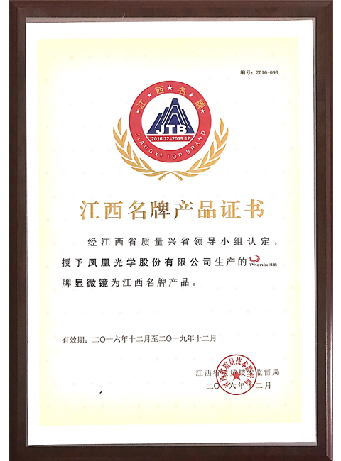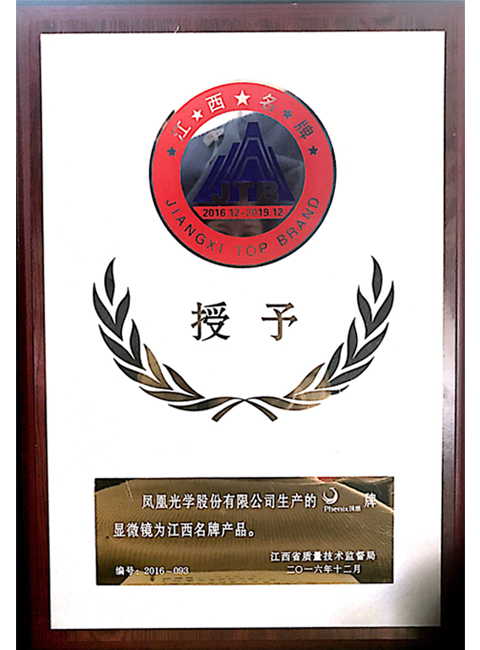 二〇一六年江西省质量技术监督局授予凤凰牌显微镜江西名牌产品(1)