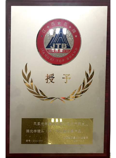 二〇一四年江西省质量技术监督局授予凤凰牌光学镜头江西名牌产品