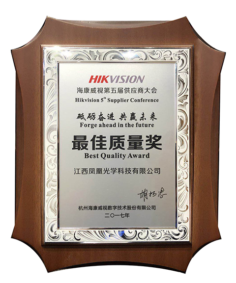 二〇一七年海康威视第五届供应商大会最佳质量奖