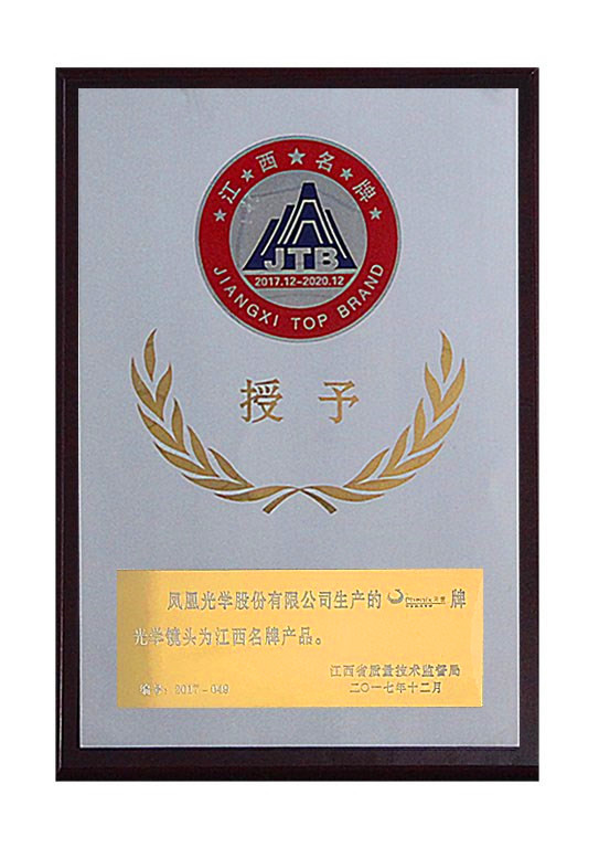 热烈祝贺我司光学镜头荣获 “江西省名牌产品”称号