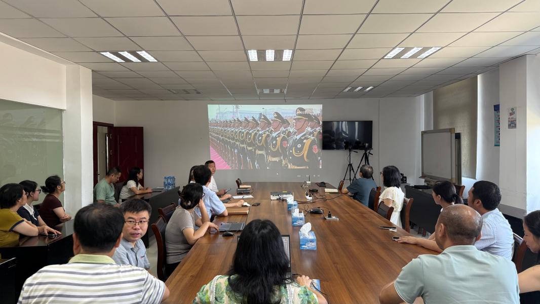 为纪念中国人民抗日战争暨世界反法西斯战争胜利80周年,弘扬爱国主义精神,增强团队凝聚力,2025年9月3日9时,股份机关党支部、凤凰智能电子党支部分别组织本支部党员、职工在科研楼四楼会议室、凤凰智能电子1楼大厅集中观看抗战胜利80周年阅兵直播盛况,共同回顾那段艰苦卓绝的抗战岁月,感受祖国的繁荣与强大。