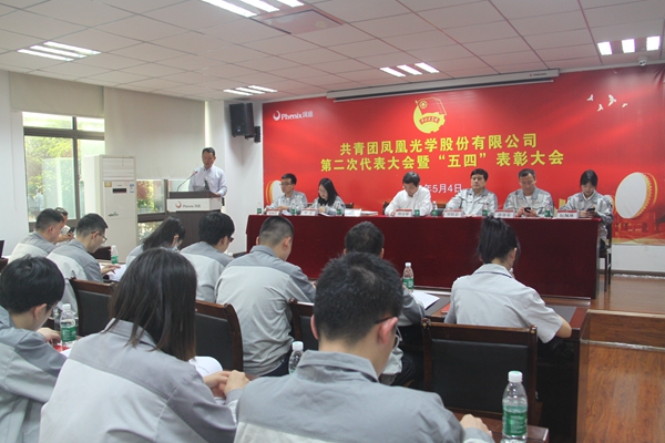 五四青年节当天,在这个以青春命名的日子里,共青团凤凰光学股份有限公司第二次代表大会在公司科研大楼1号会议室隆重召开。这是在凤凰光学认真贯彻落实党的二十大精神,全面开启“十四五”高质量发展新征程之际召开的一次青年盛会。这次代表大会的主要任务是:回顾和总结凤凰光学团委七年来的工作,探索和规划今后几年团委工作的总体思路和任务,选举产生共青团凤凰光学第二届委员会委员。本次大会主会场设在上饶总部,异地单位视频方式参会。团员代表、列席代表共计70余人参加会议。中电海康副总经理、凤凰光学党委书记王雄对此次团代会非常重视,临时因公务未能亲临大会,特发来了贺信,向大会的胜利召开表示热烈的祝贺!凤凰股份党委副书记熊诗雄,纪委书记、工会主席罗跃忠,凤凰股份党委副书记、凤凰控股总经理王俊等出席会议。会议由团委副书记周林浩主持。